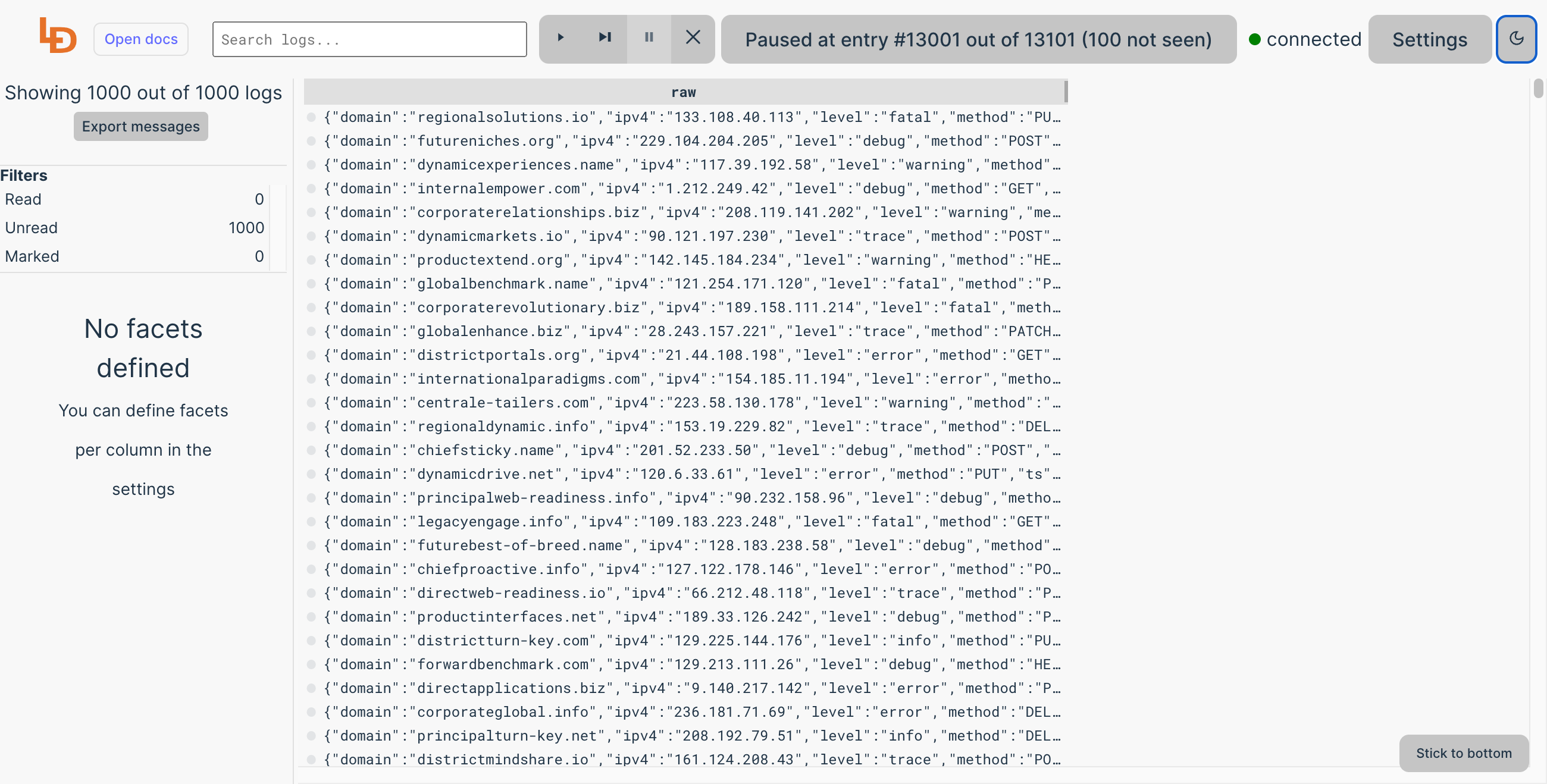 The current implementation of the buffer based on ring buffer can keep millions of log messages without a problem. That enables entirely new use cases for Logdy. Stay tuned for next version!