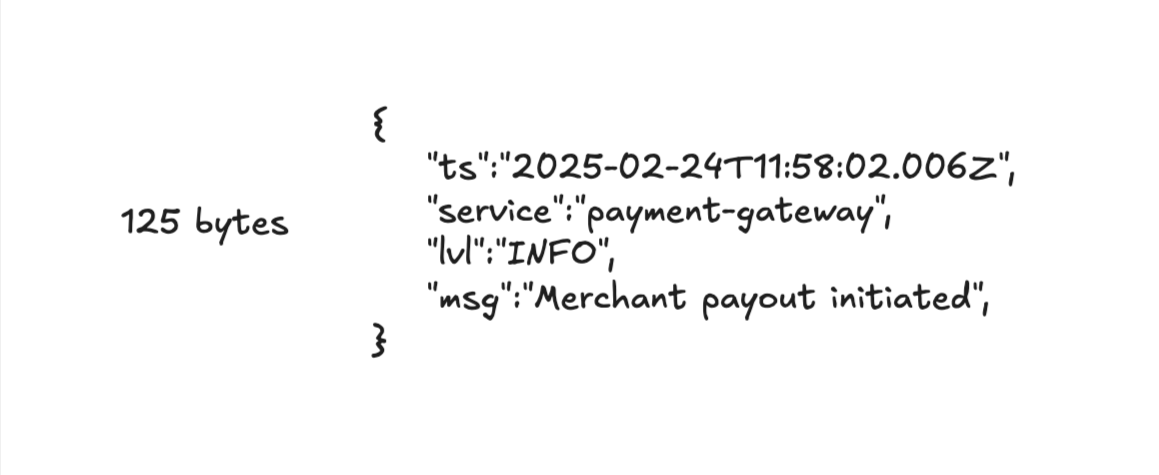 Standard JSON Log FormatIn this standard JSON format, we can identify several inefficiencies: