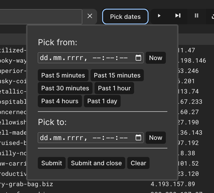 Here's a screenshot presenting a date/time picker for the timeframe.